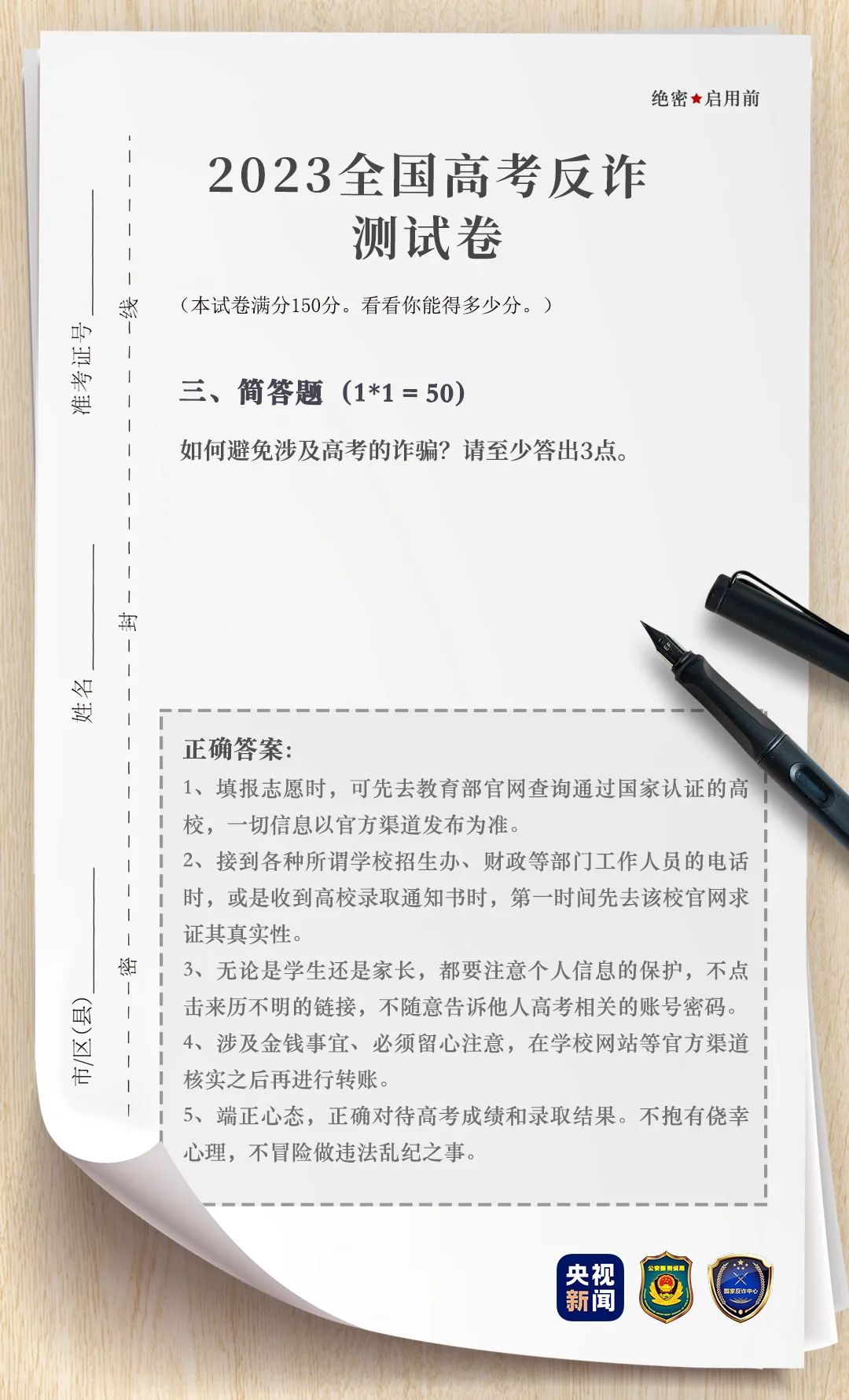 這裏有(yǒu)一份“高(gāo)考反詐試卷”